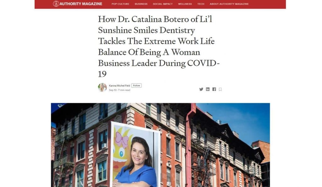 Authority Magazine interviewed Dr. Cat and decided to feature her in their recent issue! Read what they had to say in an article entitled: How Dr. Catalina Botero of Li’l Sunshine Smiles Dentistry Tackles The Extreme Work Life Balance Of Being A Woman Business Leader During COVID-19